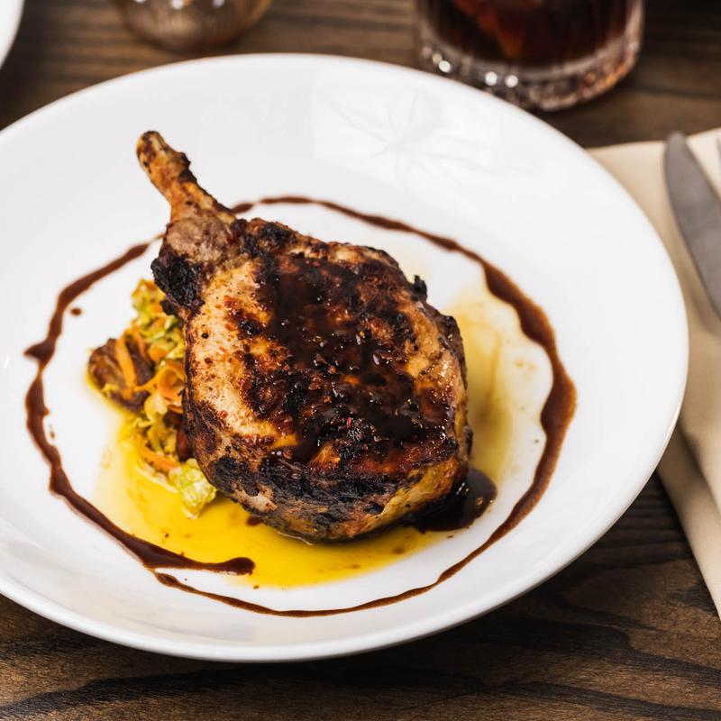 16oz berkshire pork, shaved veggie slaw, date
